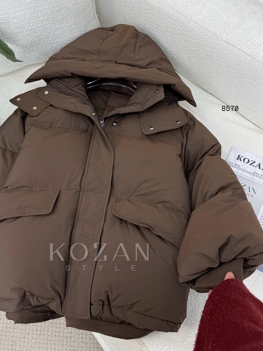 جكيت نفخ مع طاقية 8570 بني