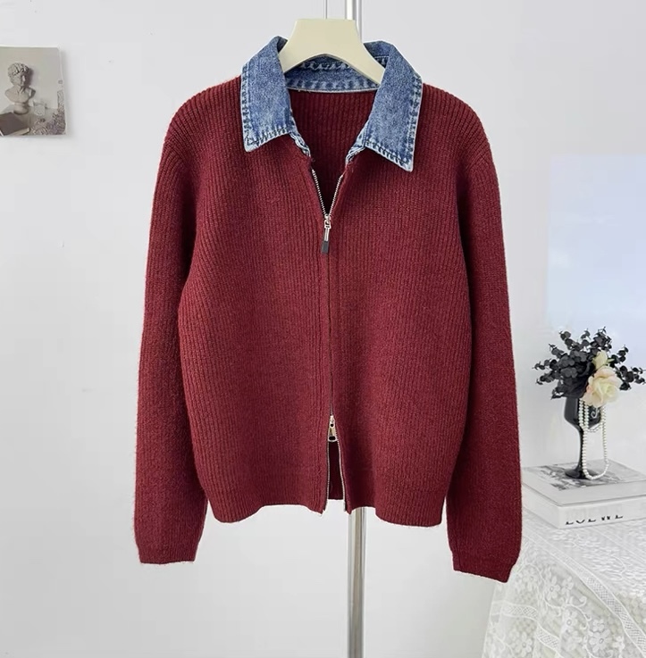 جكيت صوف قبة جينز 681 خمري