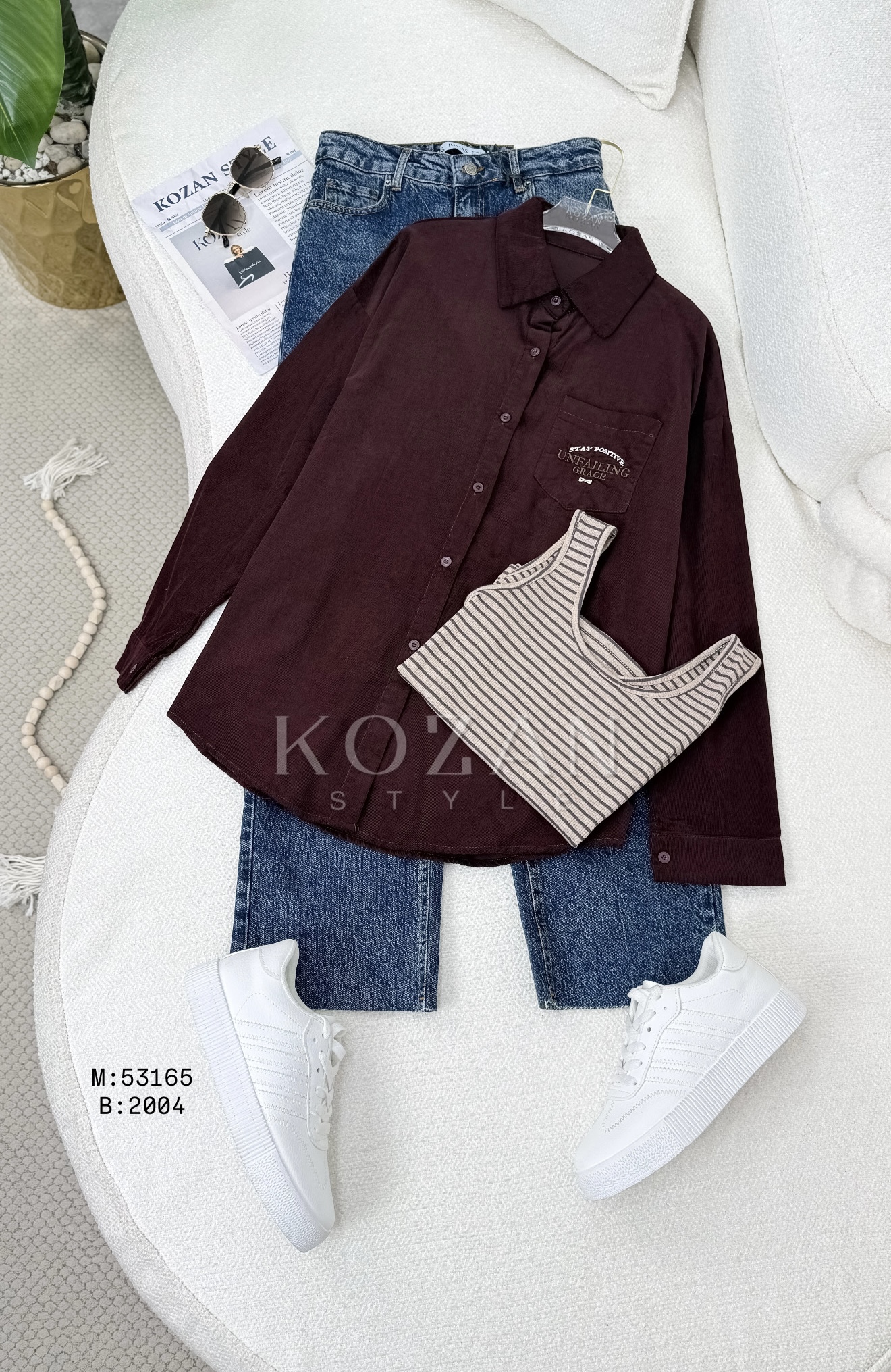 قميص مع بلوزة مخططة 53165 عسلي