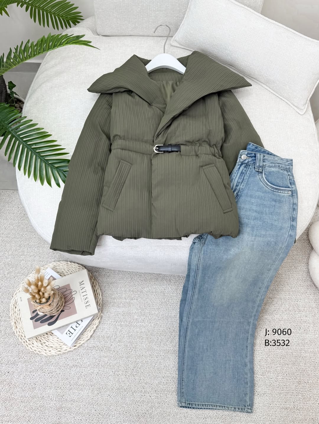 جكيت نفخ حزام 9060 زيتي