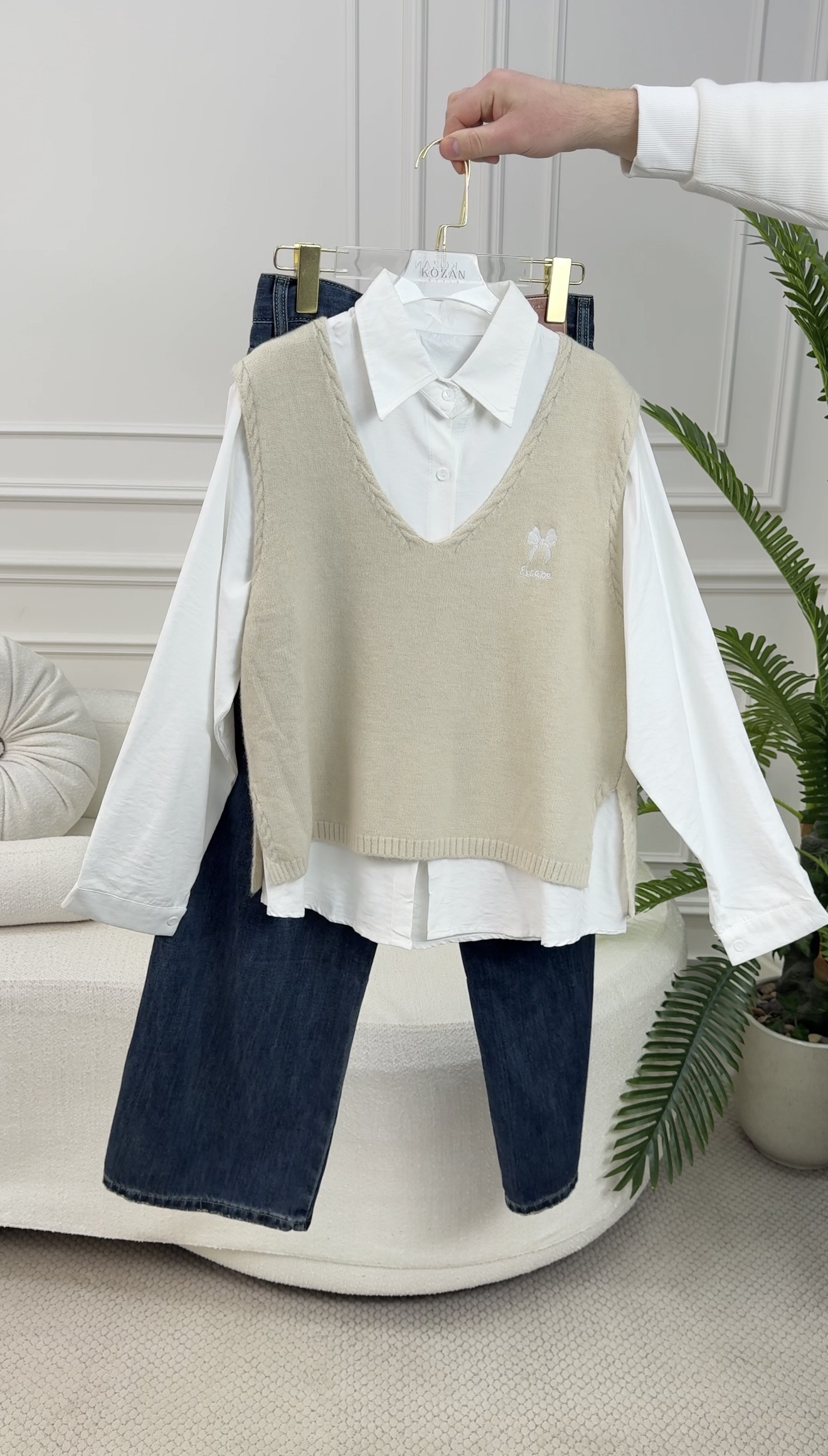 قميص سادة مع فسته ببيونه m3561 قميص بيج مع فسته كيوي