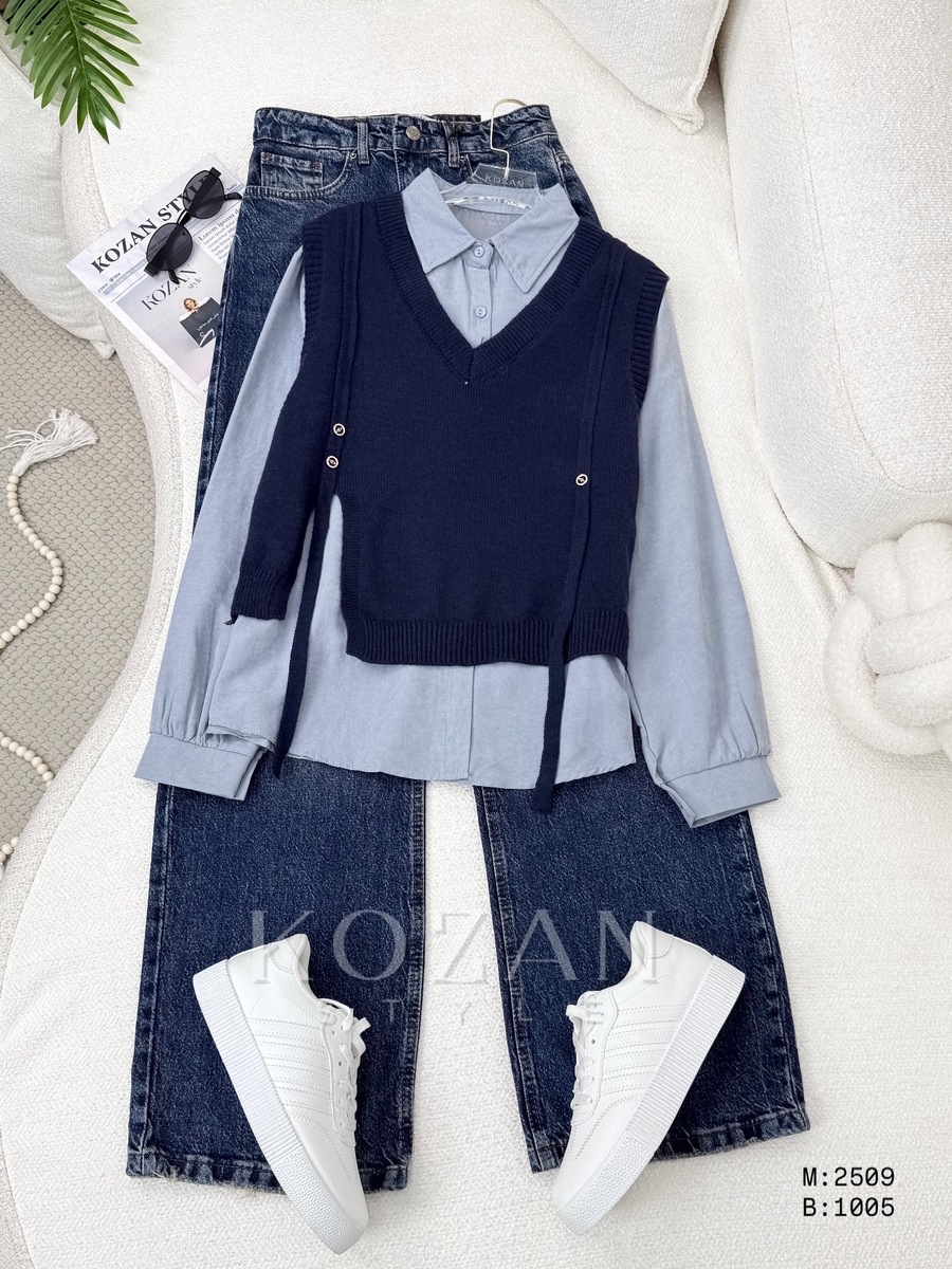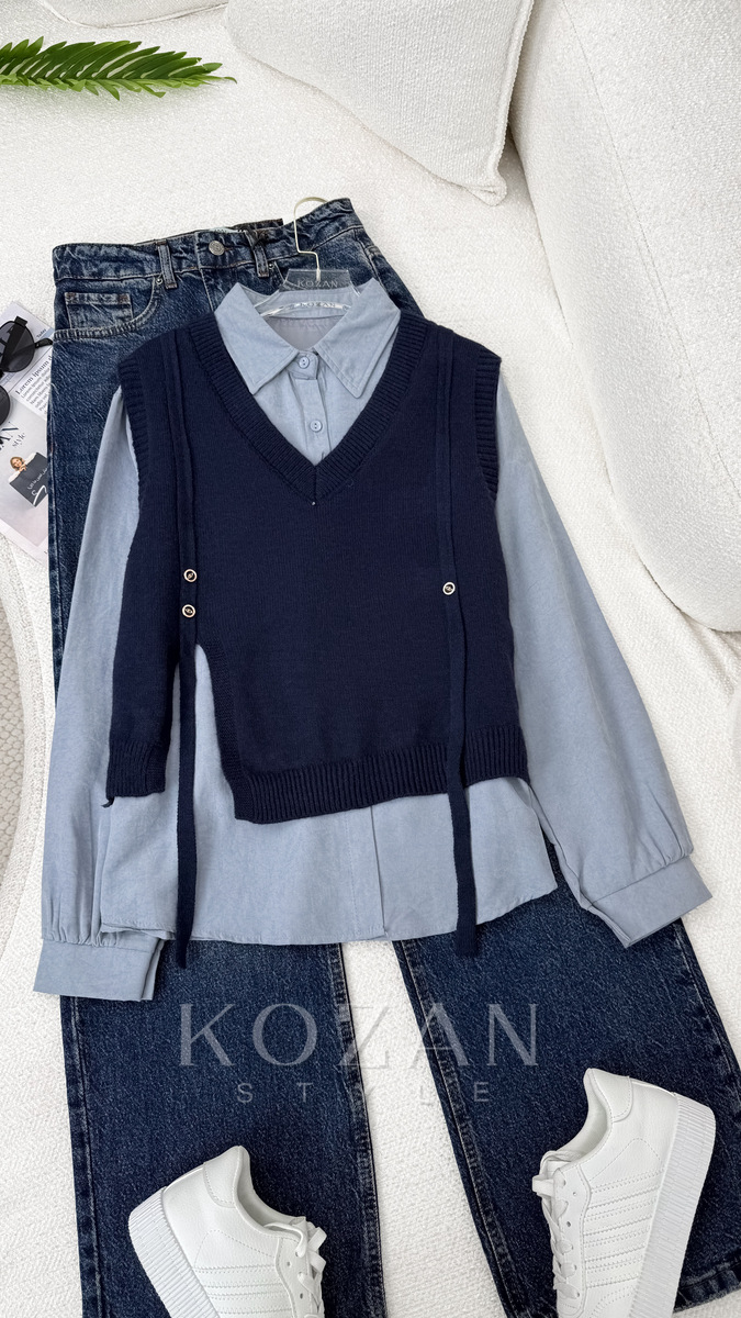 قميص مع فسته سادة m2509 قميص ازرق مع فسته سكني