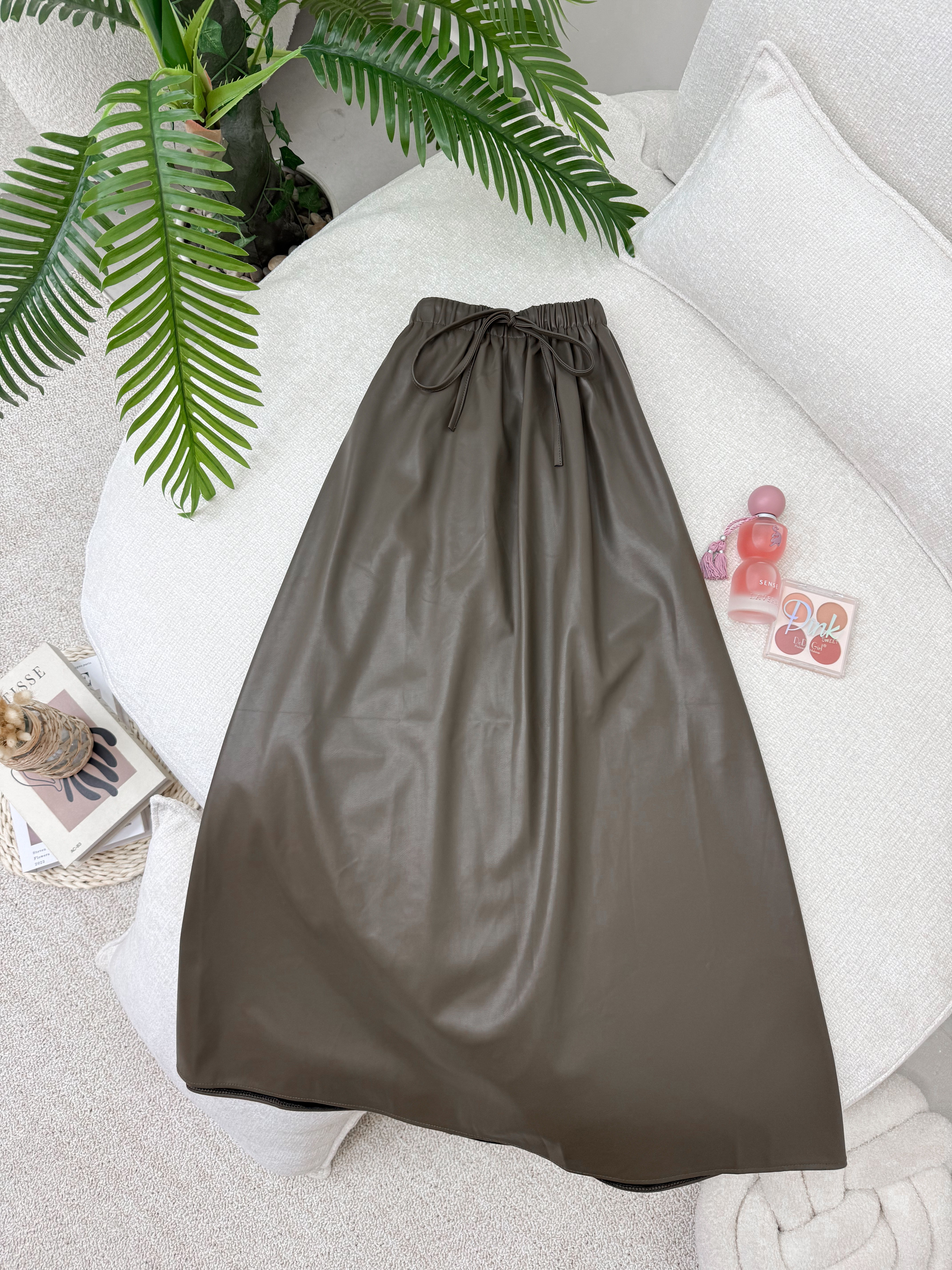 تنورة جلد سادة 2533 بني فاتح