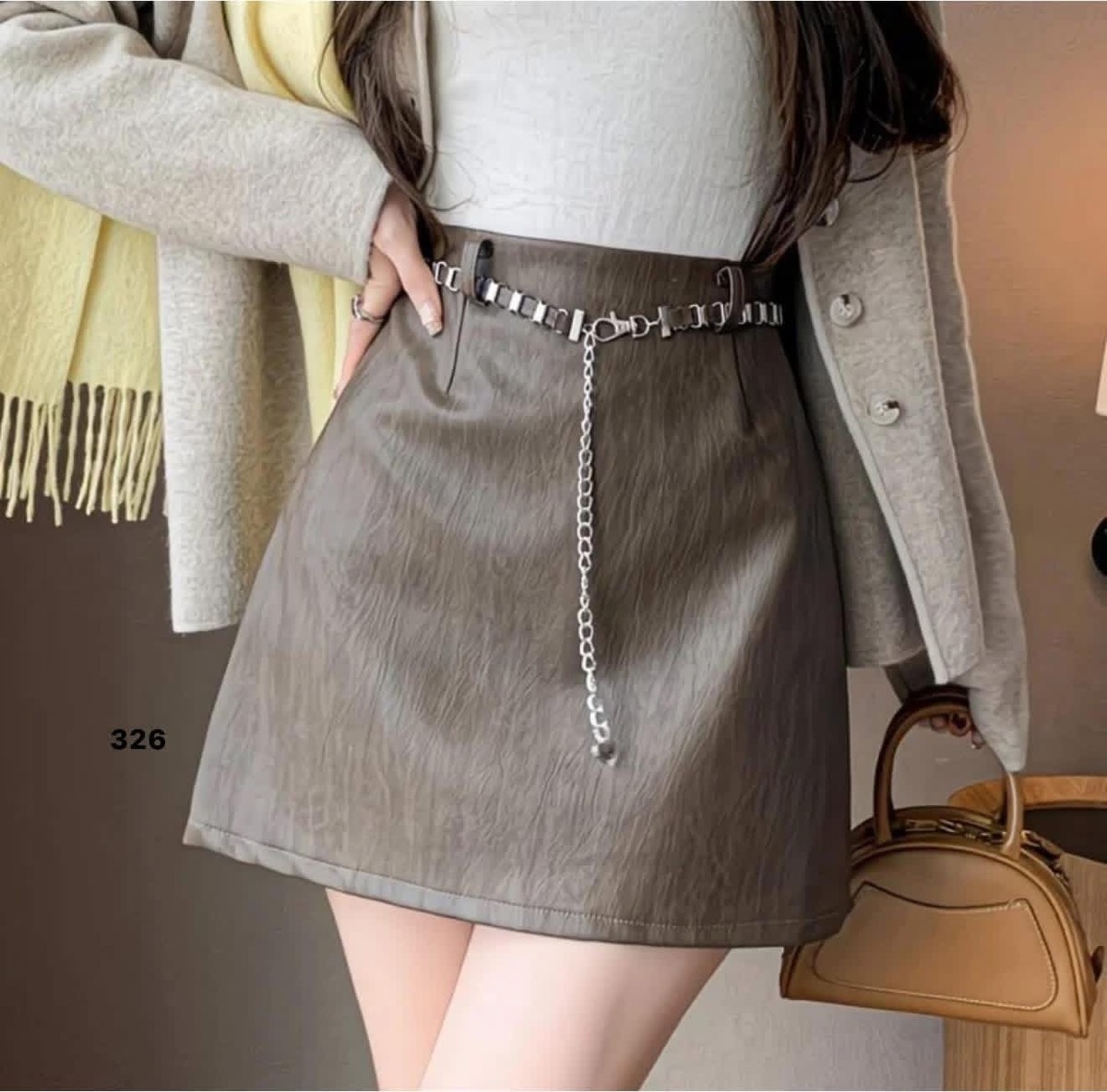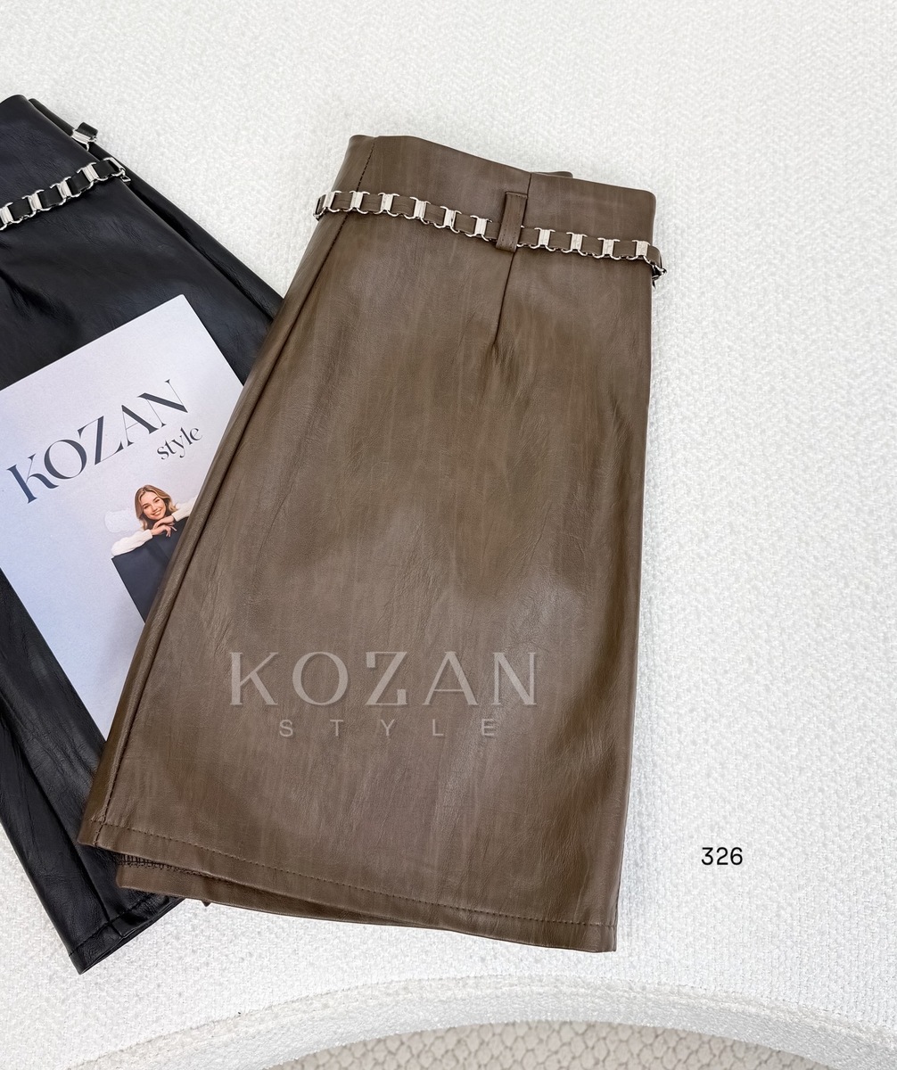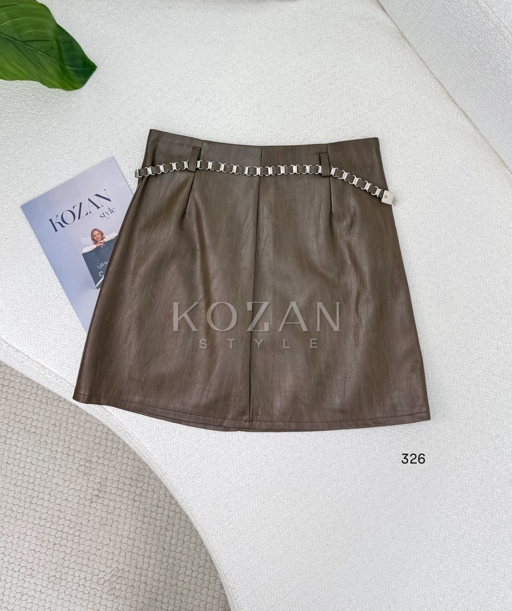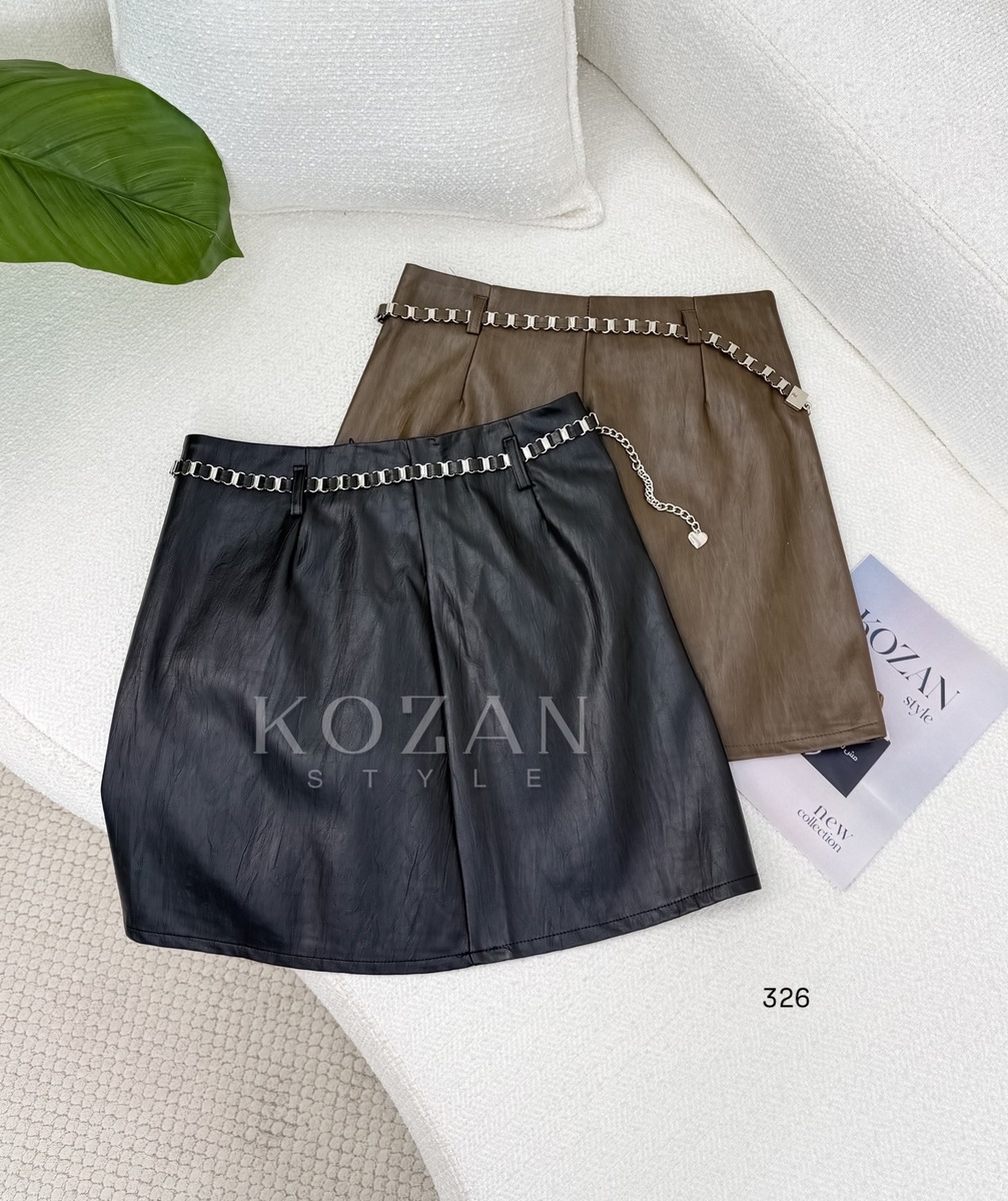 تنورة جلد قصيرة حزام حديد326 بني