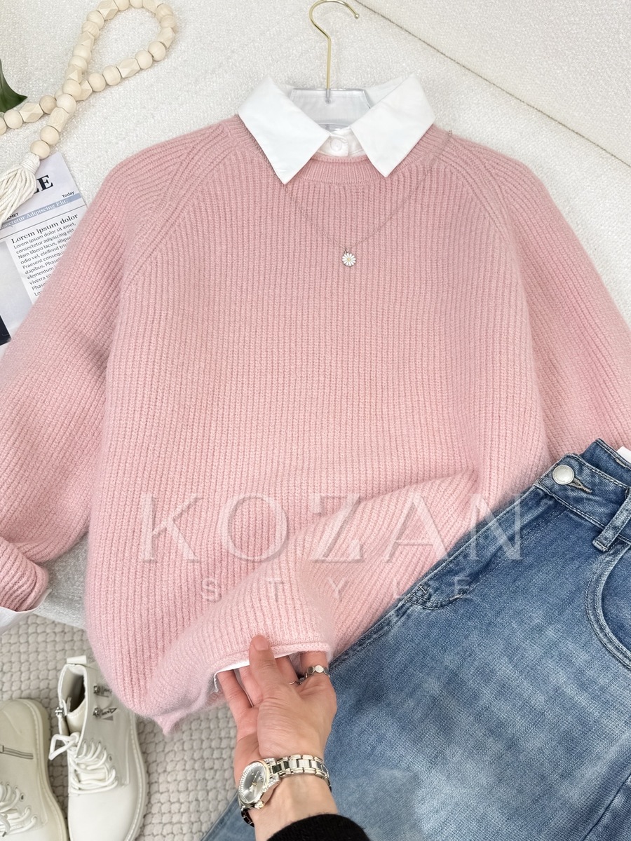 بلوزة صوف 8832 زهر مع قميص ابيض