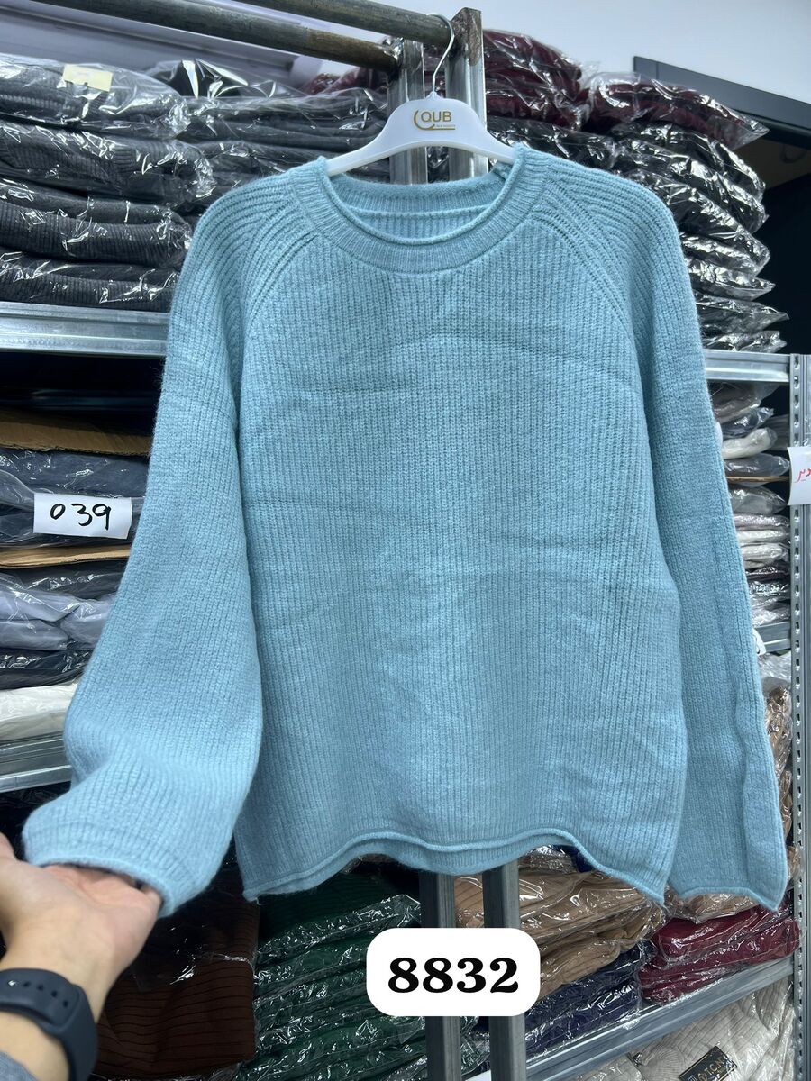 بلوزة صوف 8832 ازرق مع قميص ابيض