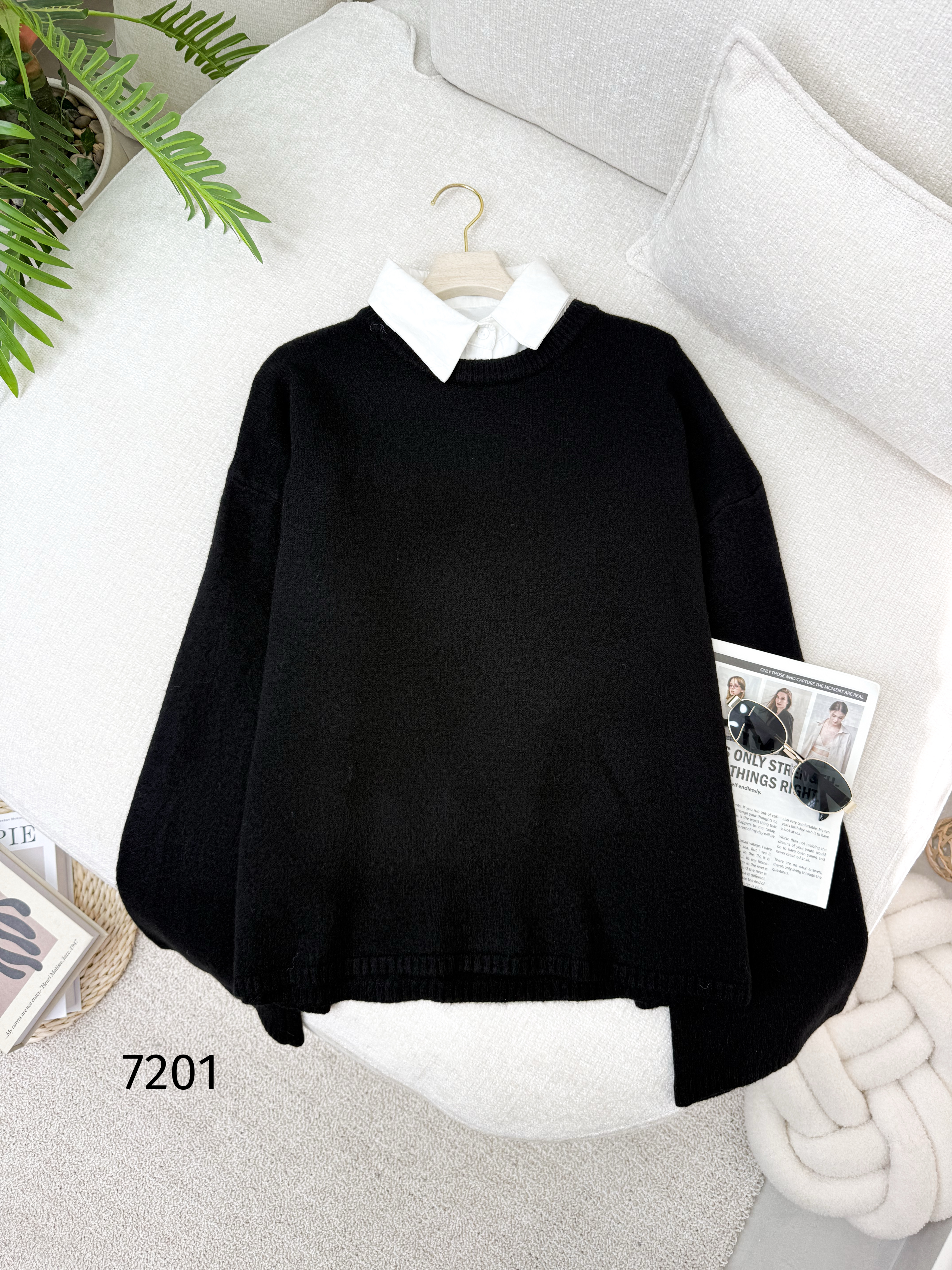 بلوزة صوف اوفر سايز 7201 اسود