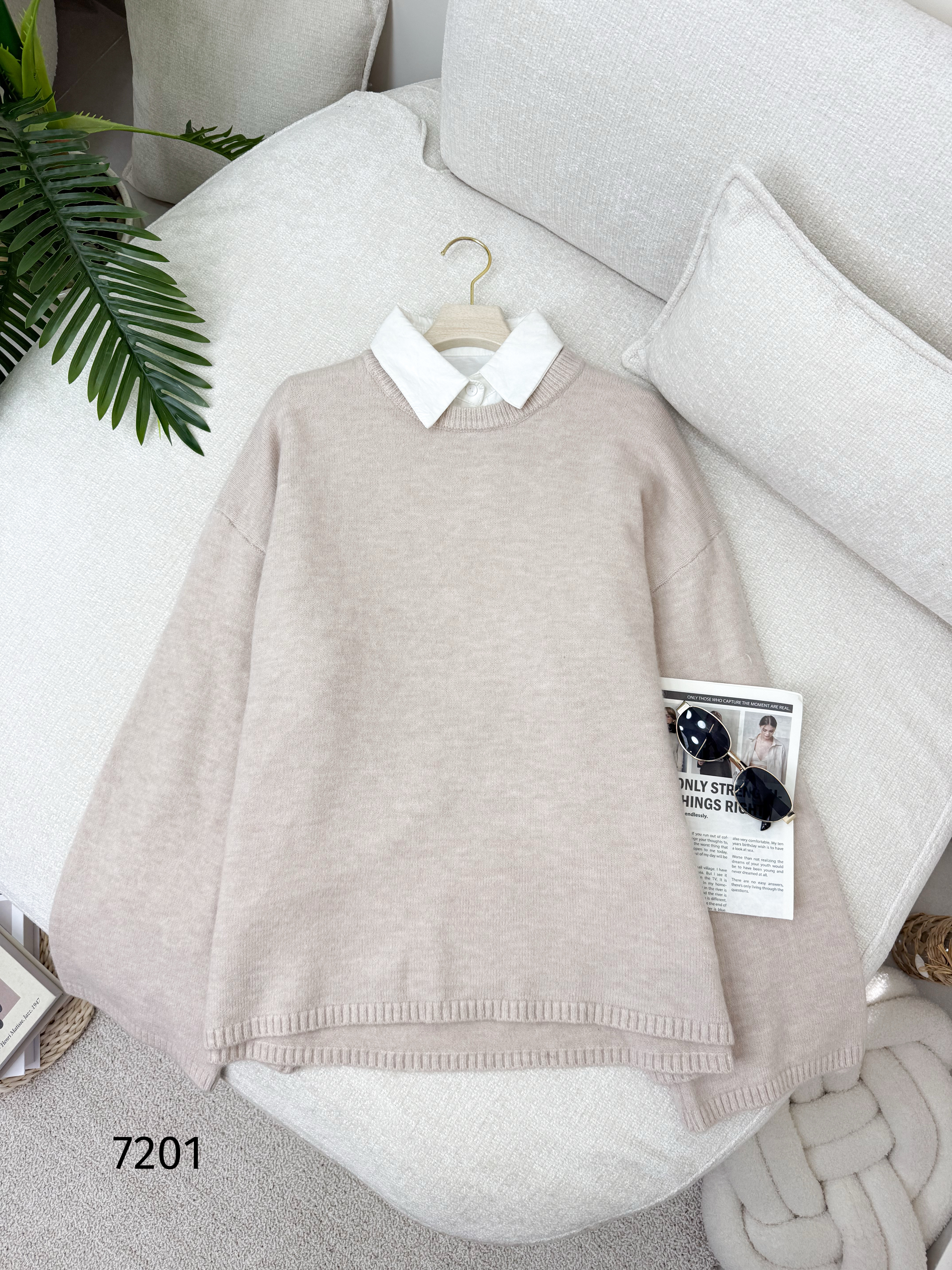 بلوزة صوف اوفر سايز 7201 بني فاتح