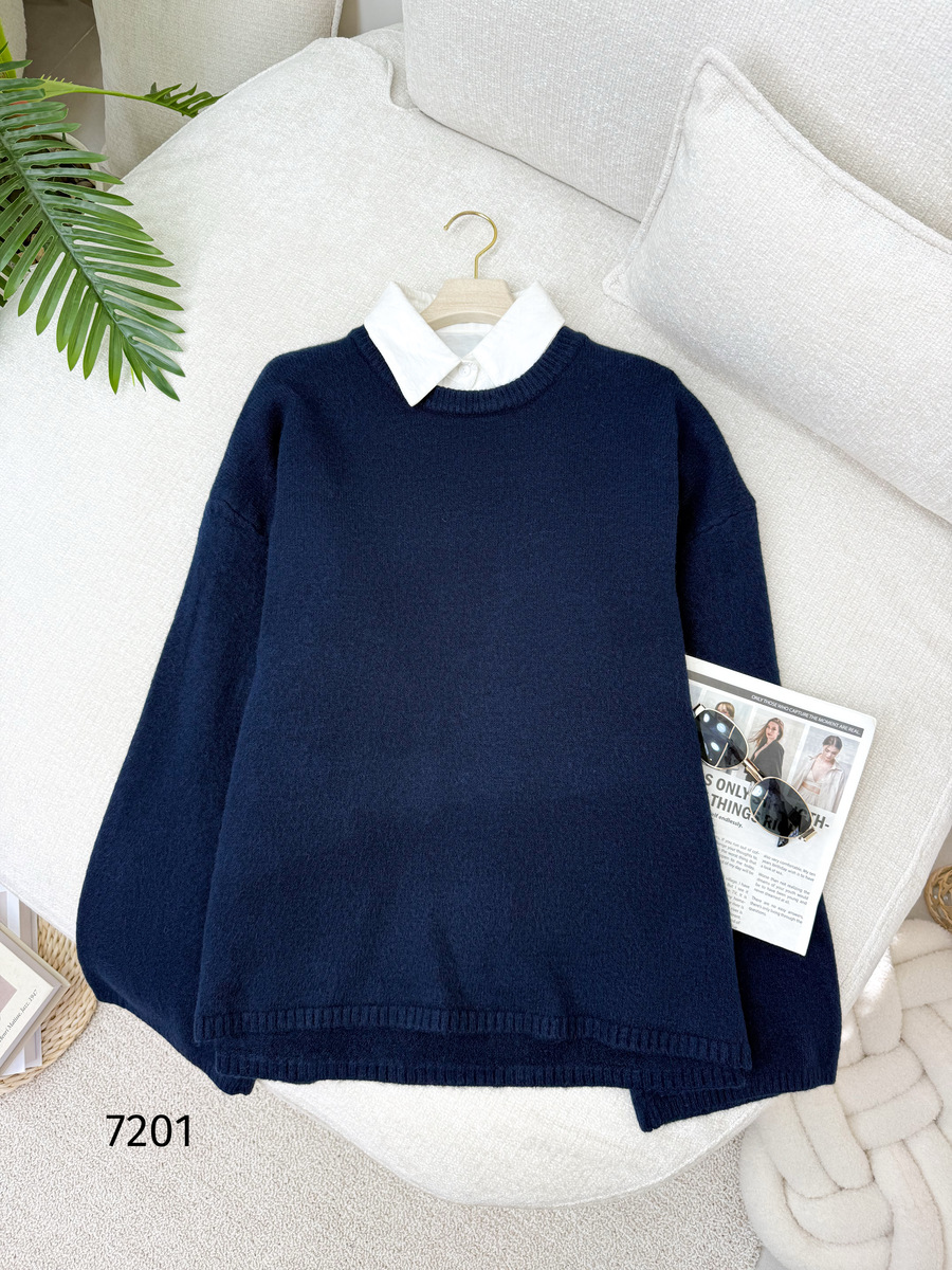 بلوزة صوف اوفر سايز 7201 كحلي