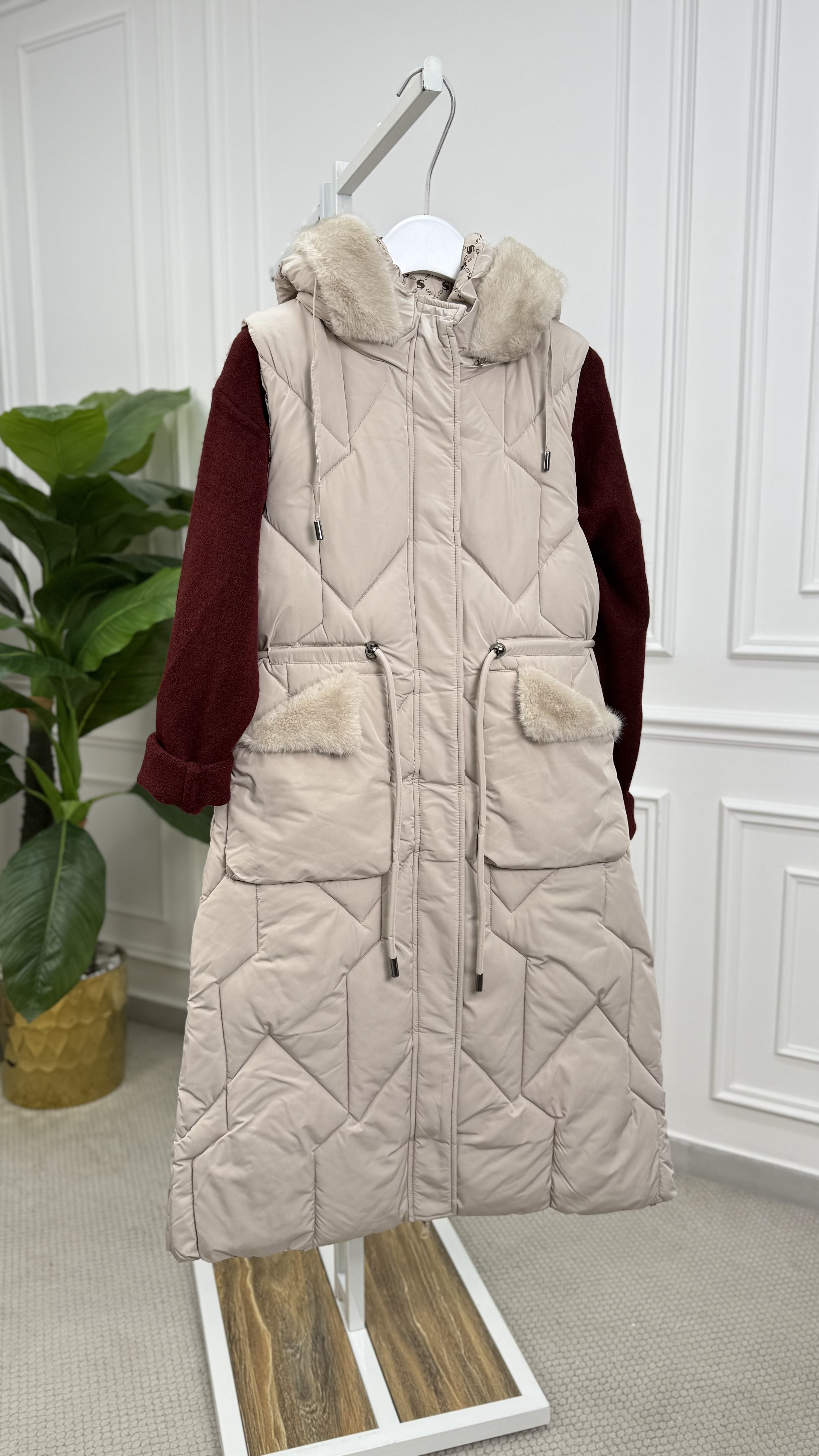 فستة نفخ قبة فرو 7778 بيج