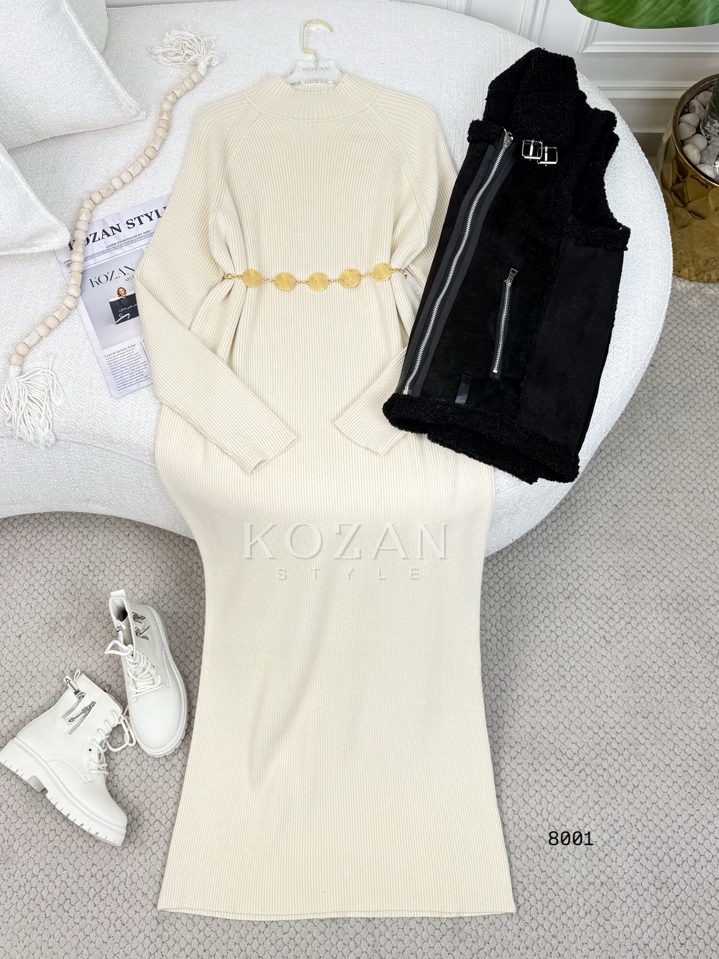 فستان سادة 8001 اوف وايت