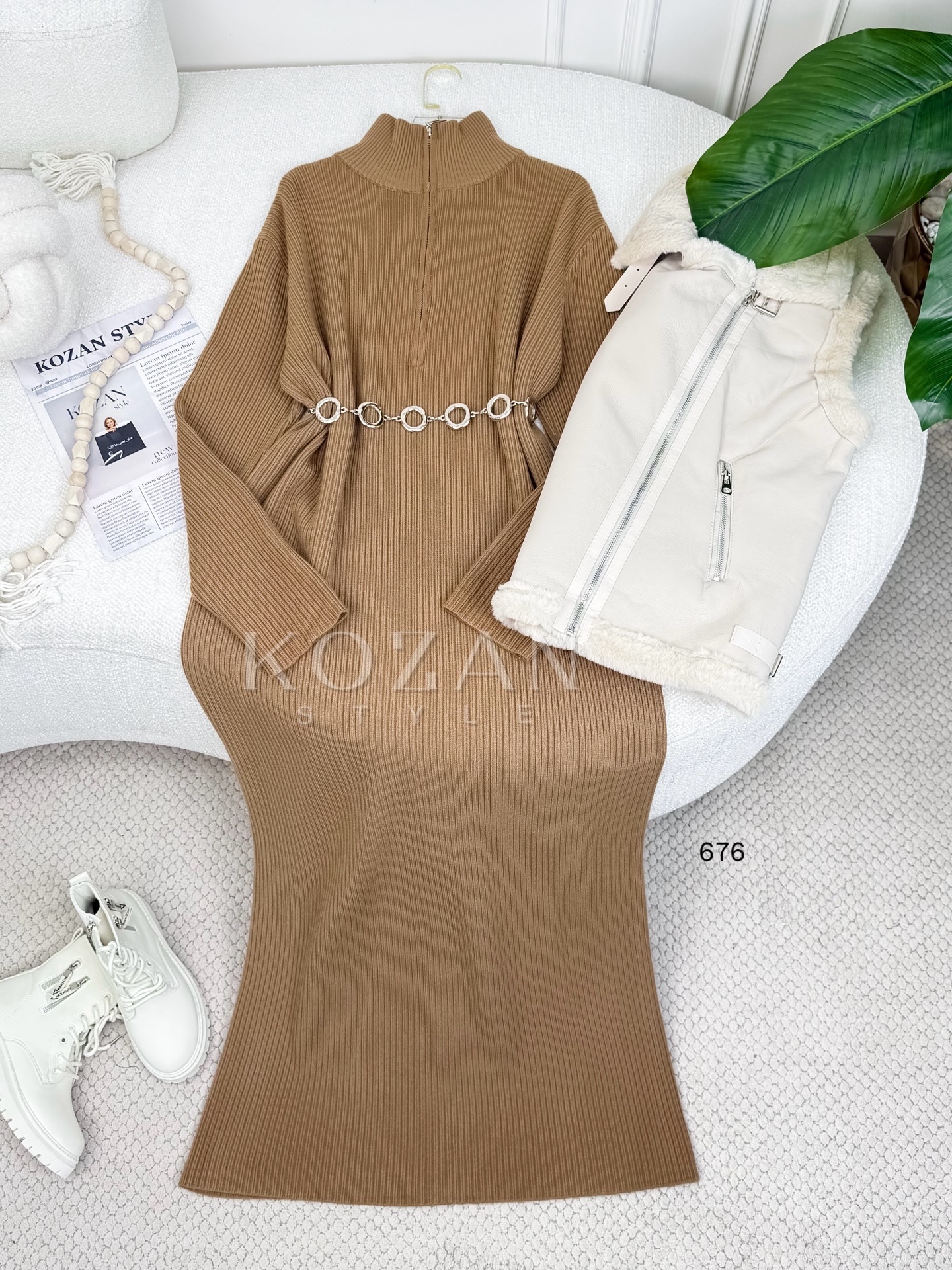 فستان صوف سحاب 676 كبتشينو