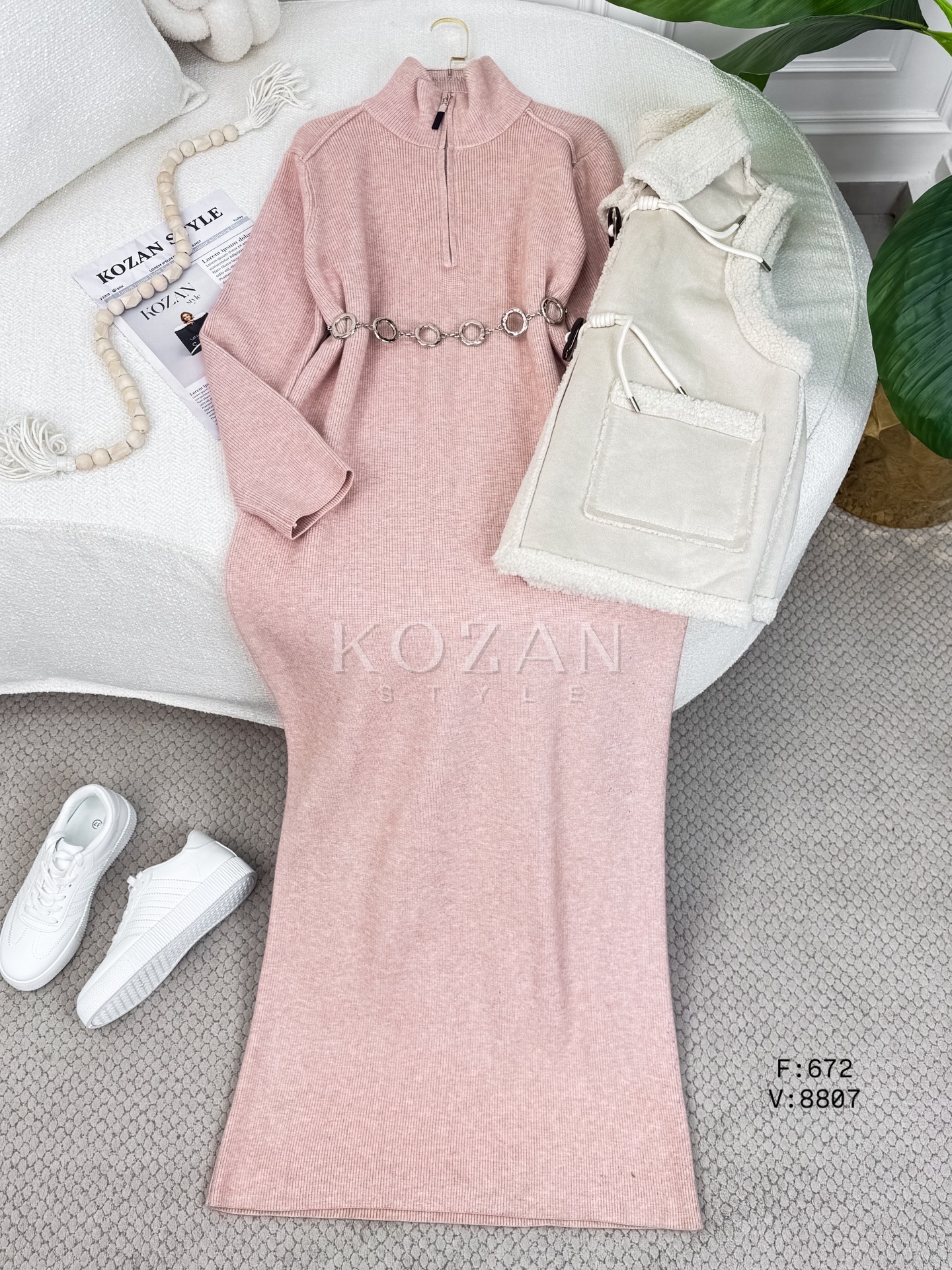 فستان صوف 672 سحاب قبة كبتشينو