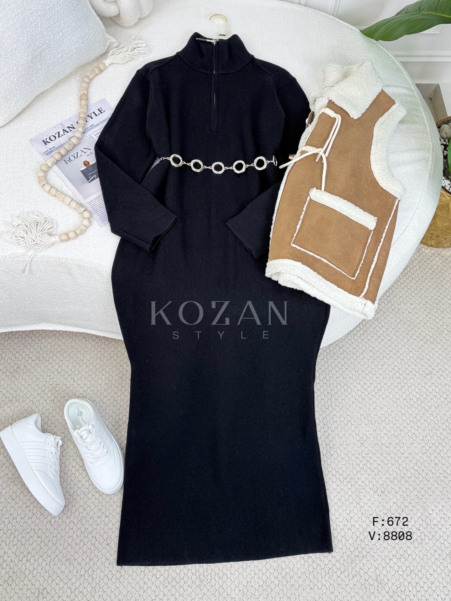 فستان صوف 672 سحاب قبة كبتشينو