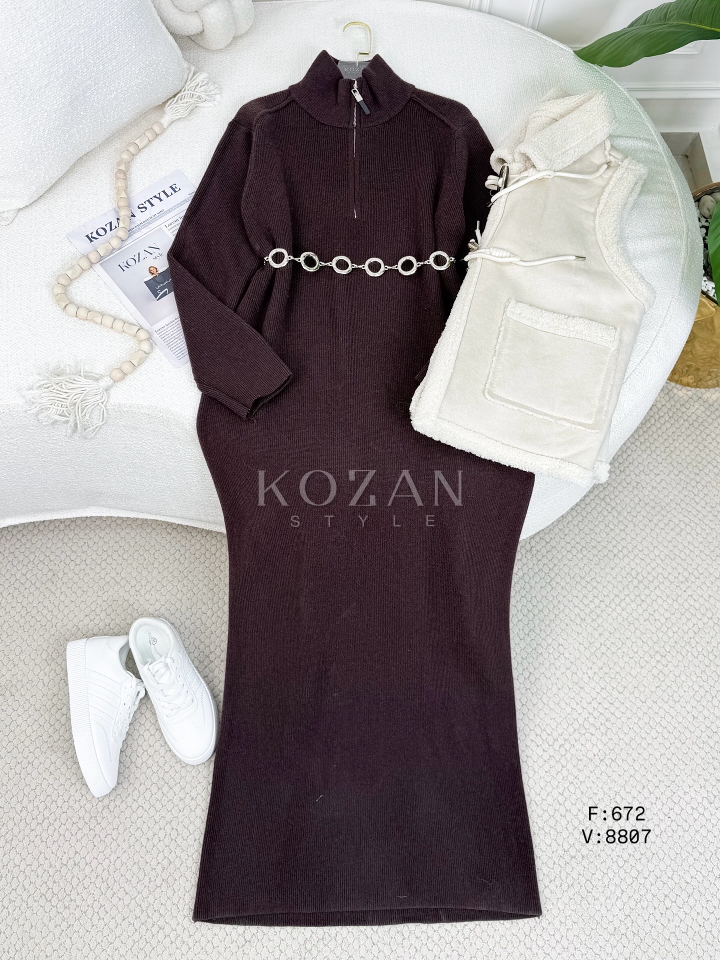 فستان صوف 672 سحاب قبة كبتشينو