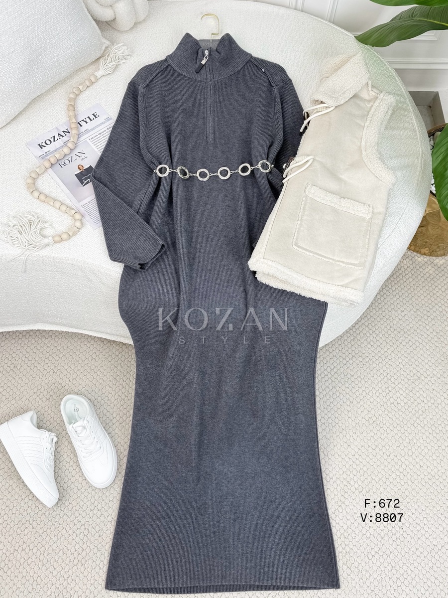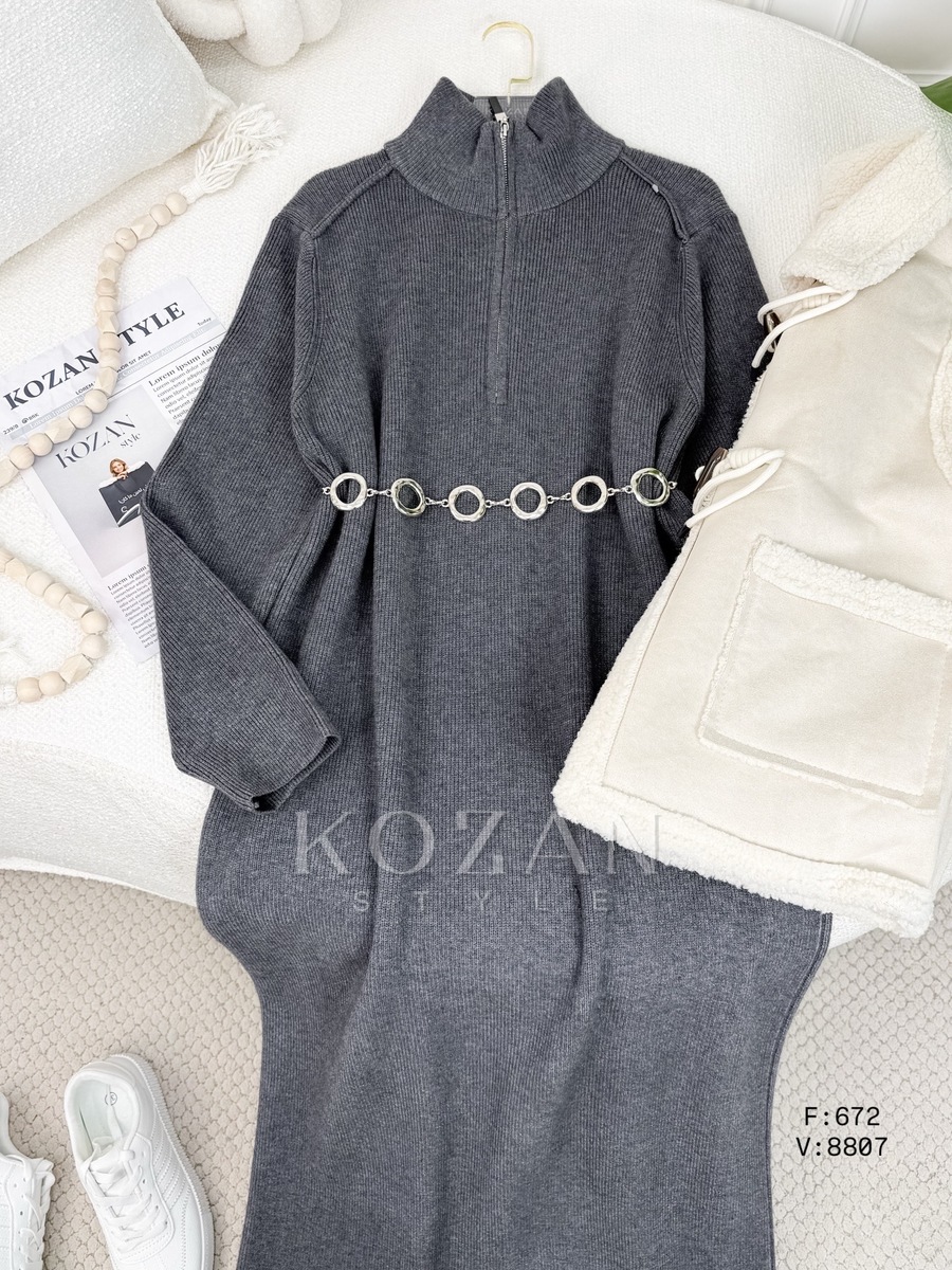 فستان صوف 672 سحاب قبة رمادي