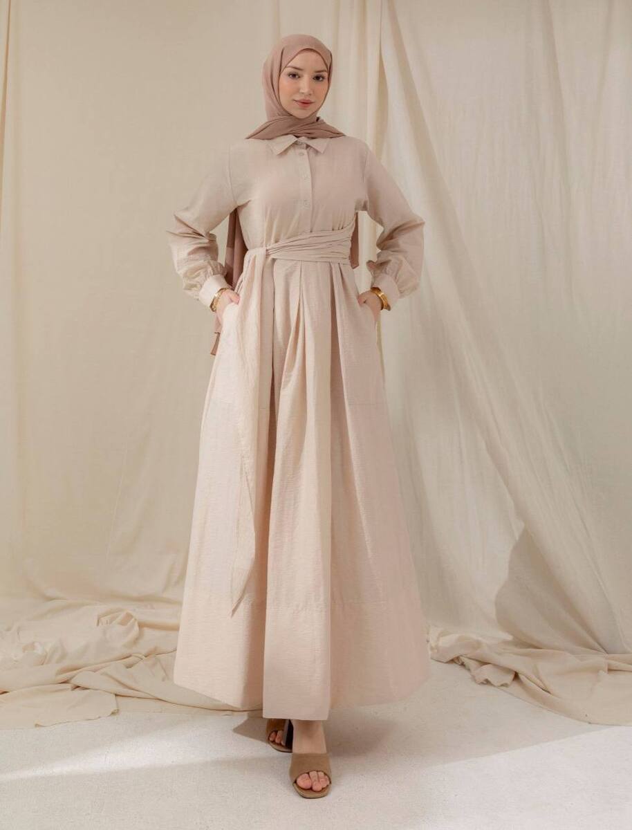 فستان رفيف 6605 بيج