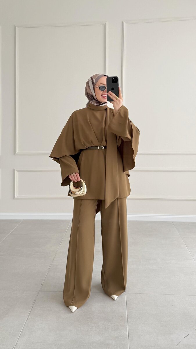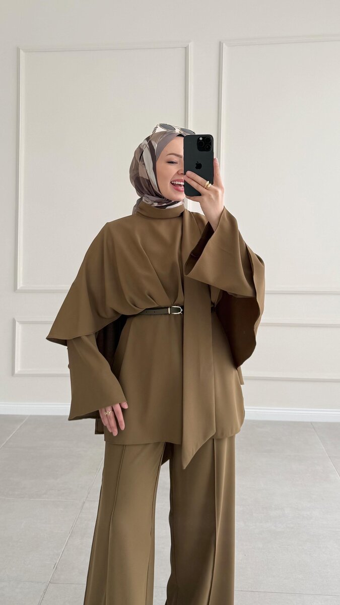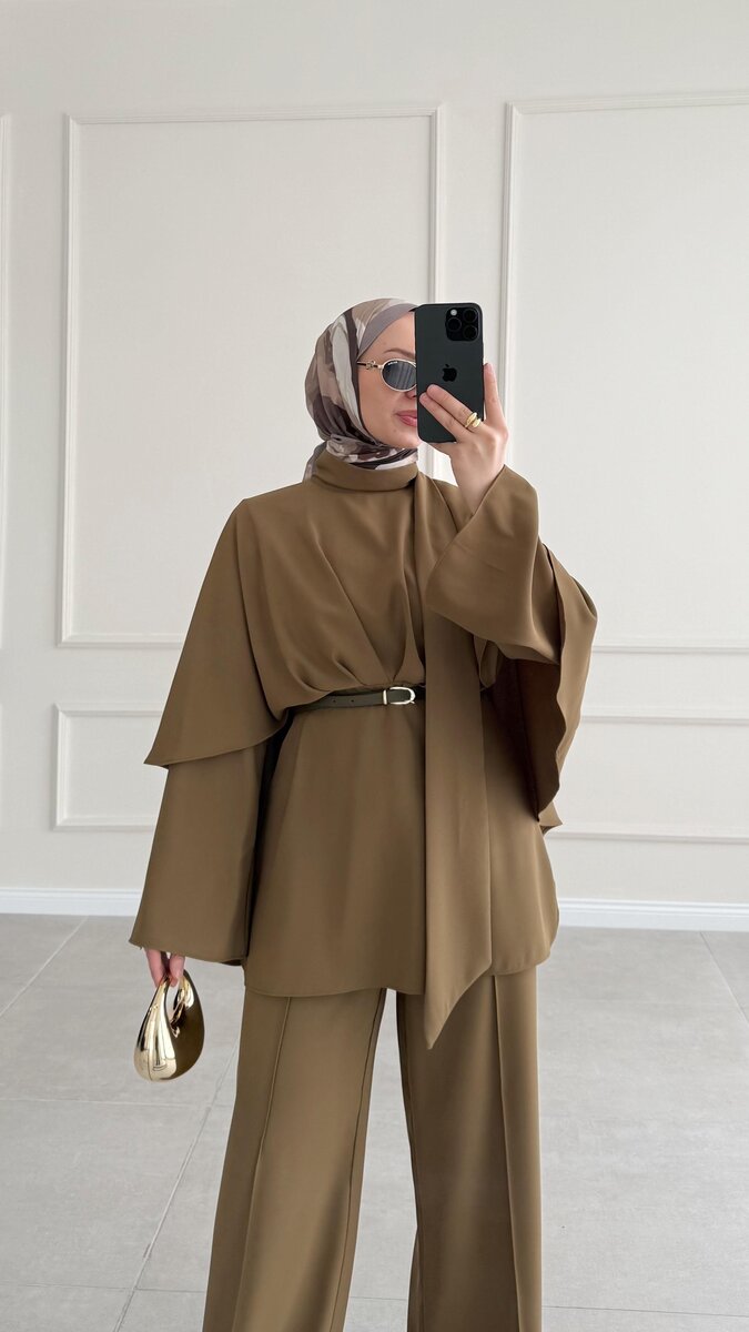 عباية ميرا مع شال 1042 زيتي