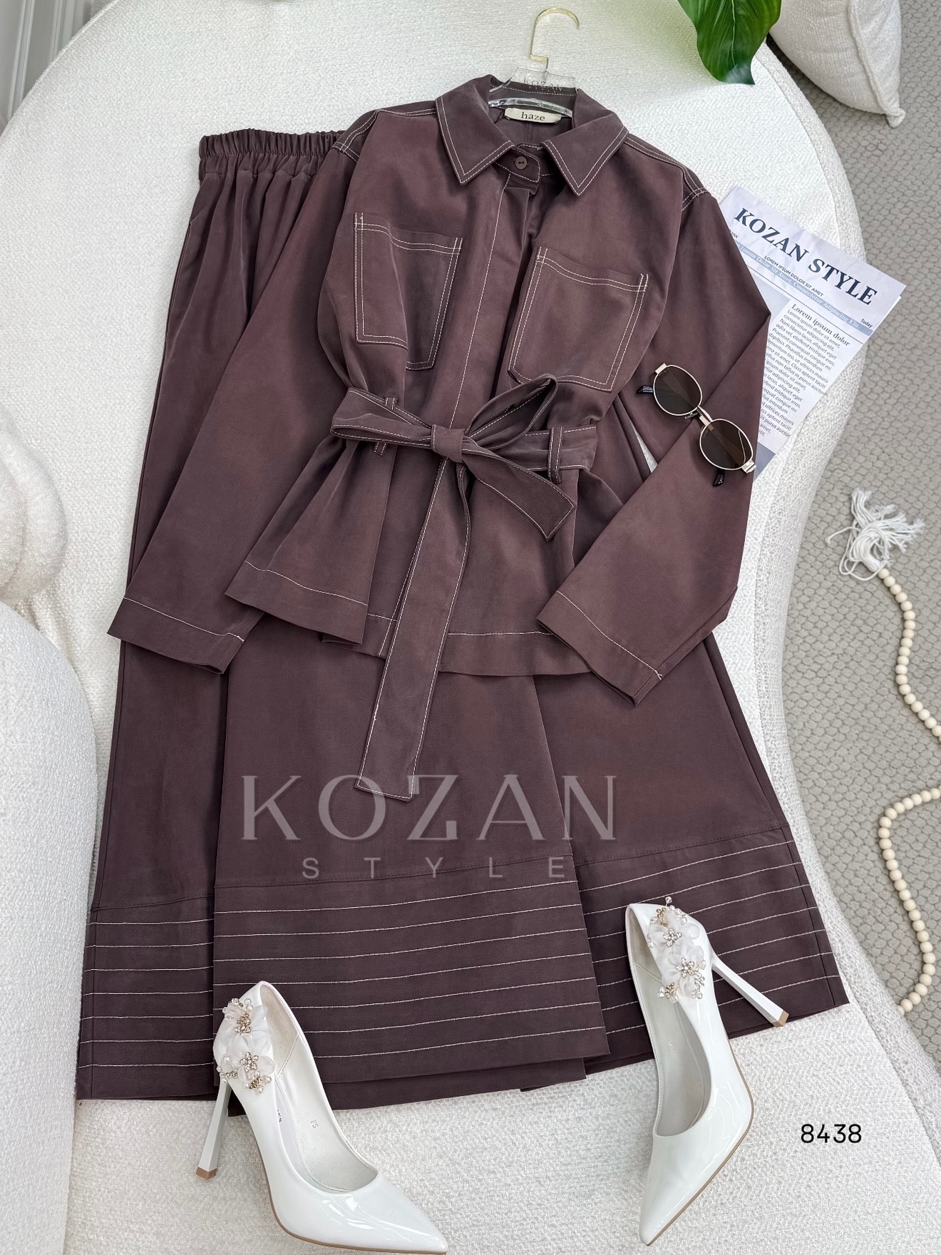 طقم تنورة haze 8438 بني غامق