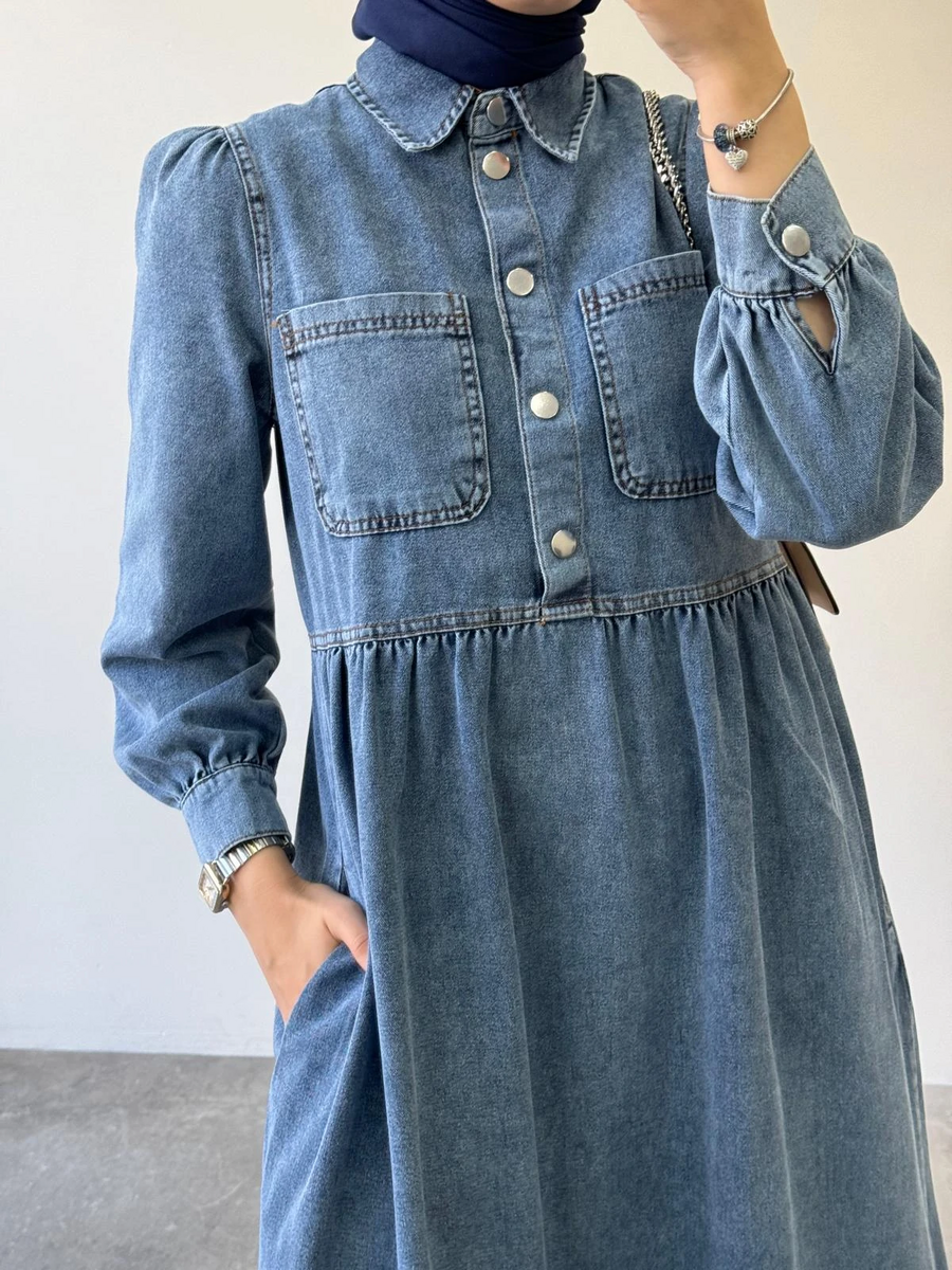 فستان جينز فاتح كوثر 2853