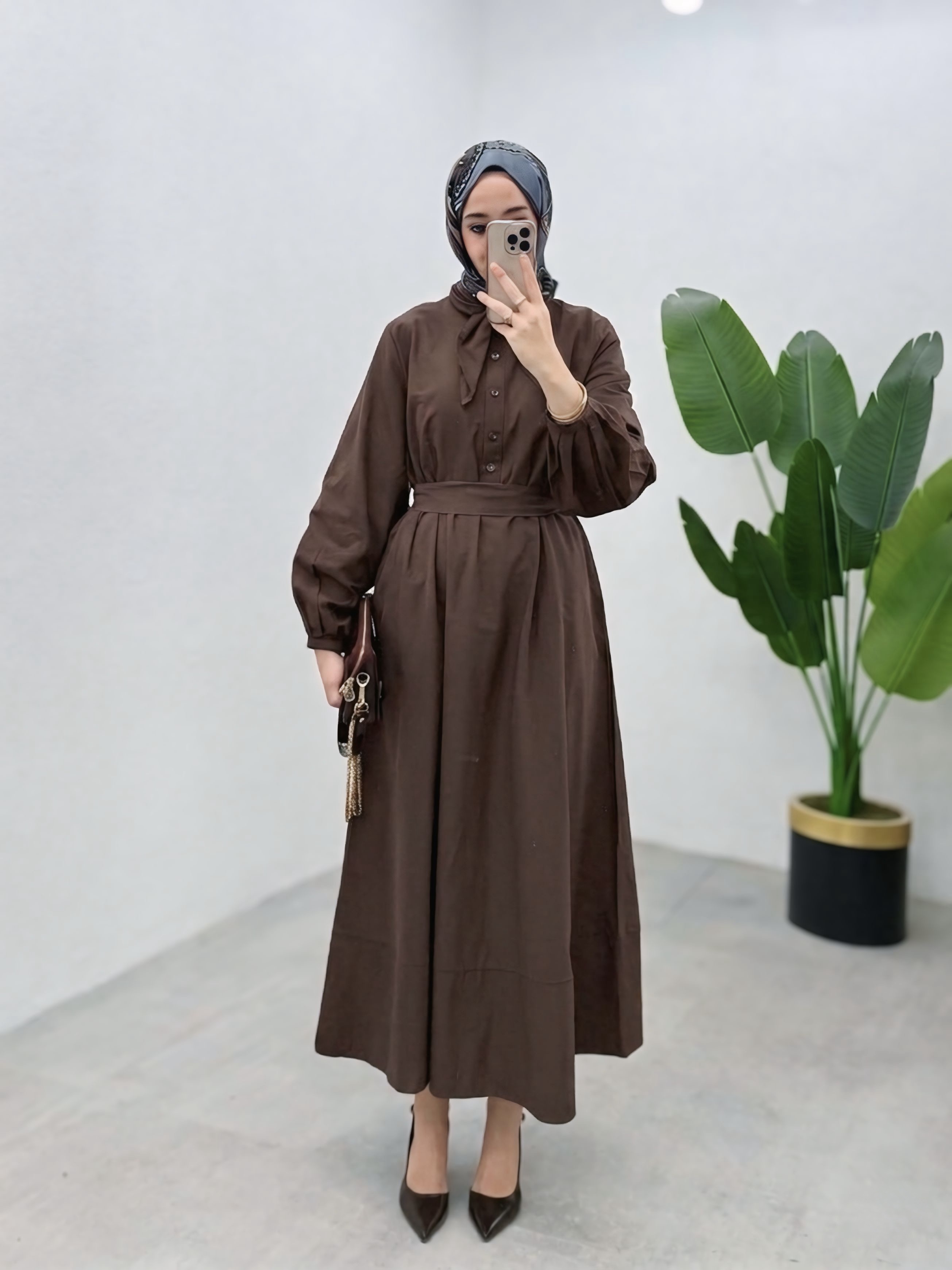 فستان ربطة 8445 بني