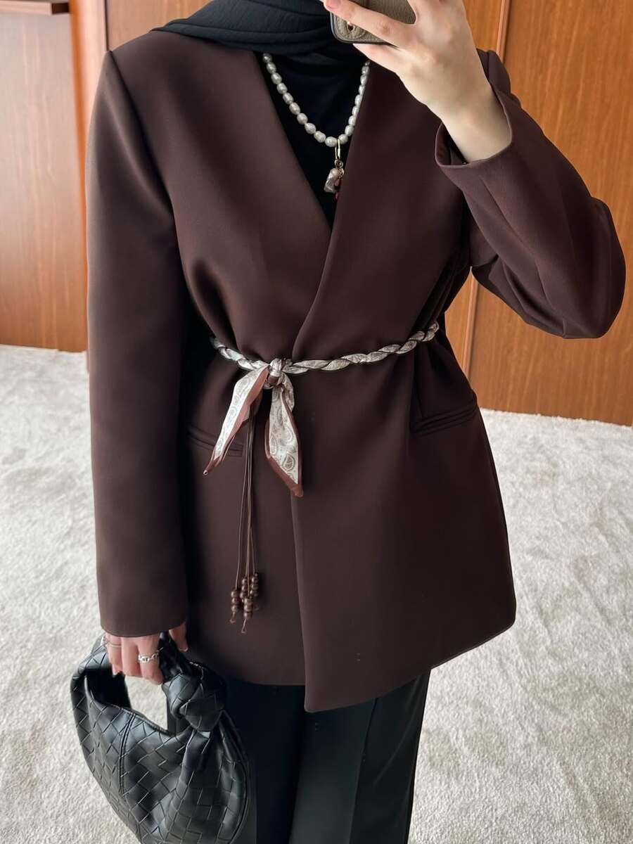 جكيت مع حزام مجدل كحلي