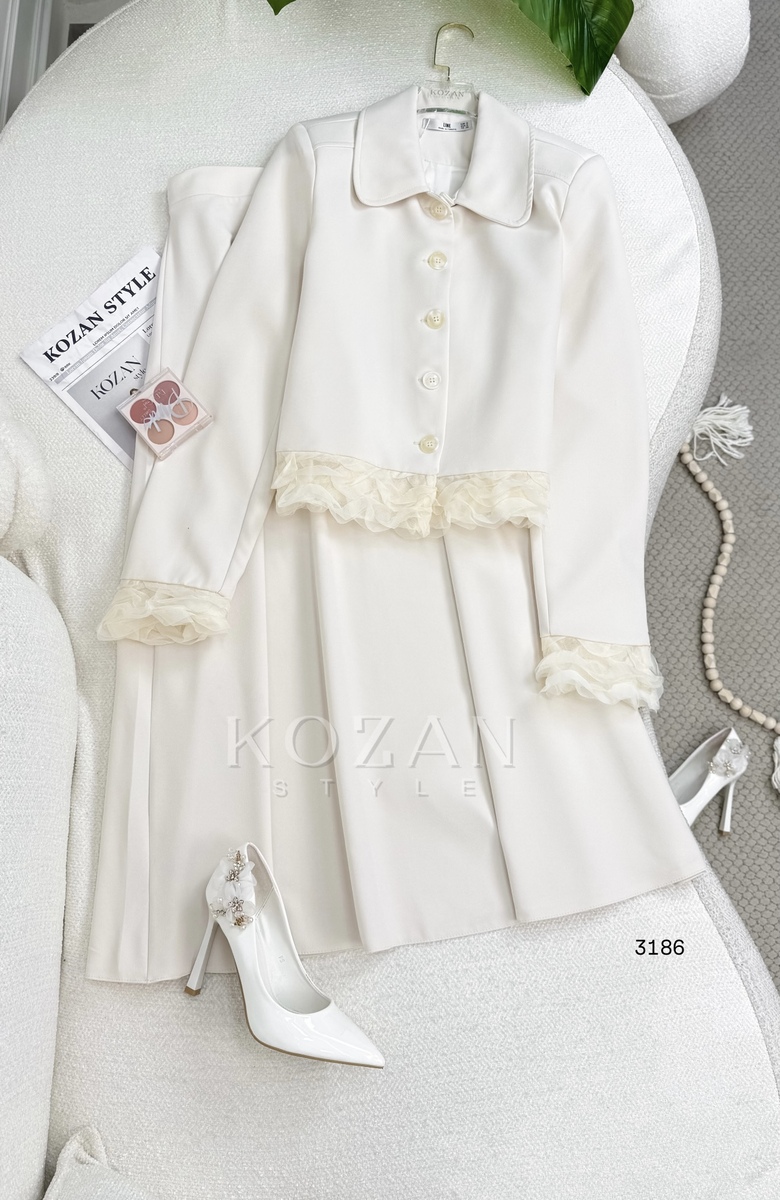 طقم تنورة نرجس 3186 بيج فاتح