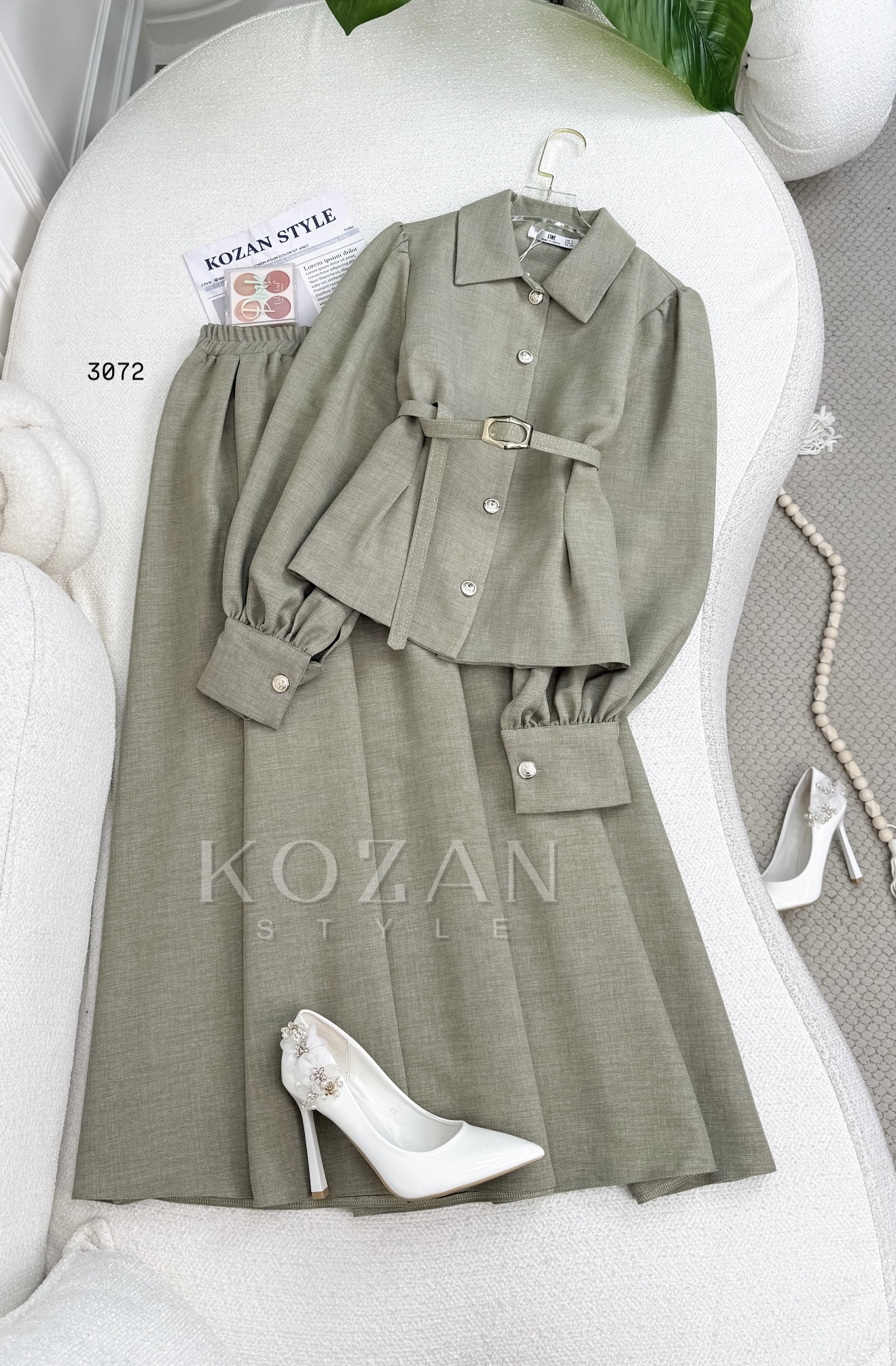 طقم تنورة رباب 3072 فستقي