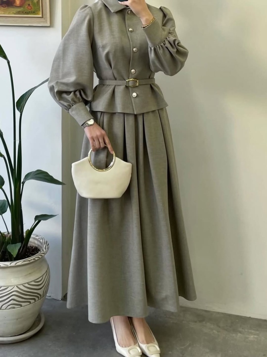 طقم تنورة رباب 3072 رمادي