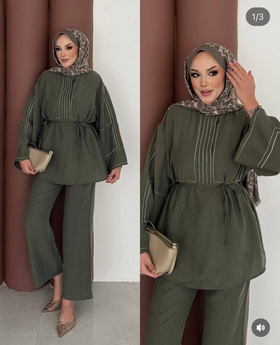 عباية ميرا مع شال 1042 زيتي