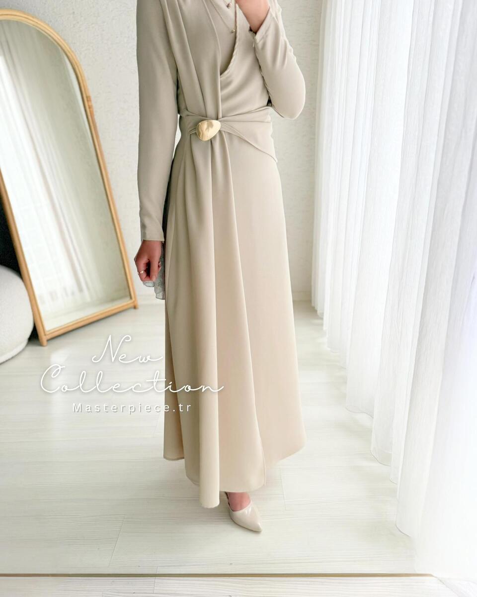 فستان ميون مع بروش بني