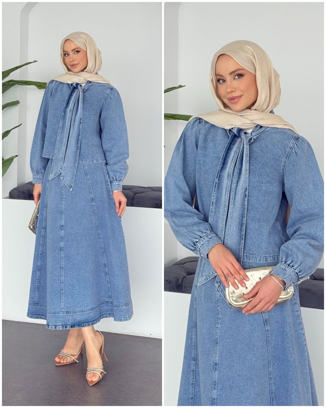 طقم تنورة جينز 0713 فاتح